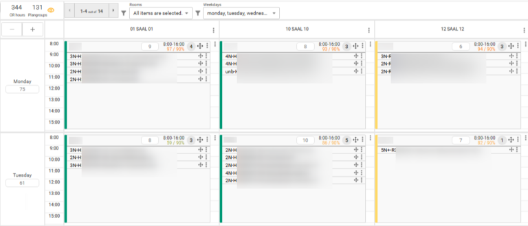 Da die Suche nach einem optimierten OP-Programm unter Einsatz von Tabellenkalkulationsprogrammen nach dem trial-and-error-Prinzip extrem aufwändig wäre, empfiehlt sich der Einsatz eines speziellen Simulationswerkzeuges, das die Konsequenzen alternativer Slot-Verteilungen auf die Wochentage transparent macht. Wir nutzen dafür ein im europäischen Ausland bereits seit Jahren eingesetztes Tool, das sowohl die manuelle Verschiebung von OP-Slots zwischen Sälen und Wochentagen unterstützt, als auch automatisiert eine belegungsoptierte OP-Planung ermittelt. Vorgegebene Restriktionen der operierenden Bereiche können dabei als Leitplanken der Simulation definiert werden.